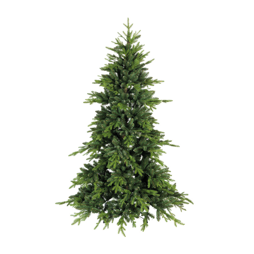 Produktinformationen "Edeltanne, 240cm, Ø 120cm 910 PE-Tips, 3643 PVC-Tips, mit Metallständer, natürliches Design, schwer entflammbar nach B1"